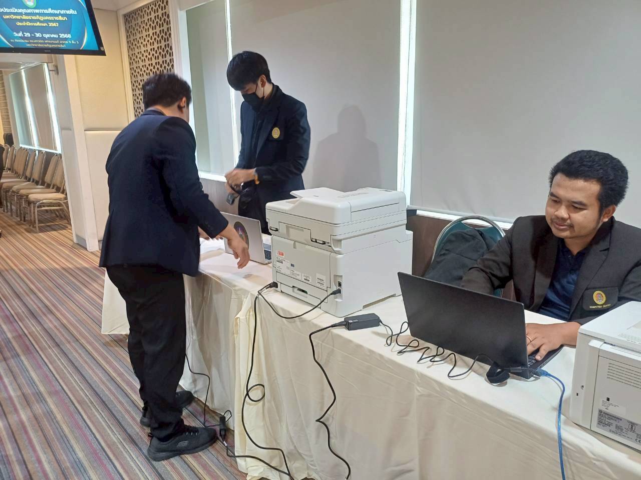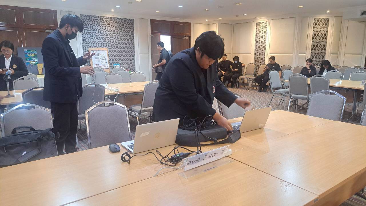 สำนักคอมพิวเตอร์ มหาวิทยาลัยราชภัฏนครราชสีมา ดำเนินการจัดเตรียมสถานที่ พร้อมติดตั้งเครื่องคอมพิวเตอร์โน้ตบุ๊กและระบบเครือข่ายอินเทอร์เน็ต เพื่อสนับสนุนการดำเนินงานตรวจประเมินคุณภาพการศึกษาภายในระดับมหาวิทยาลัย ประจำปีการศึกษา 2567 ระหว่างวันที่ 29–30 ตุลาคม 2568 ณ ห้องประชุม ดร.เศาวนิต เศาฌานนท์ อาคาร 9 ชั้น 3