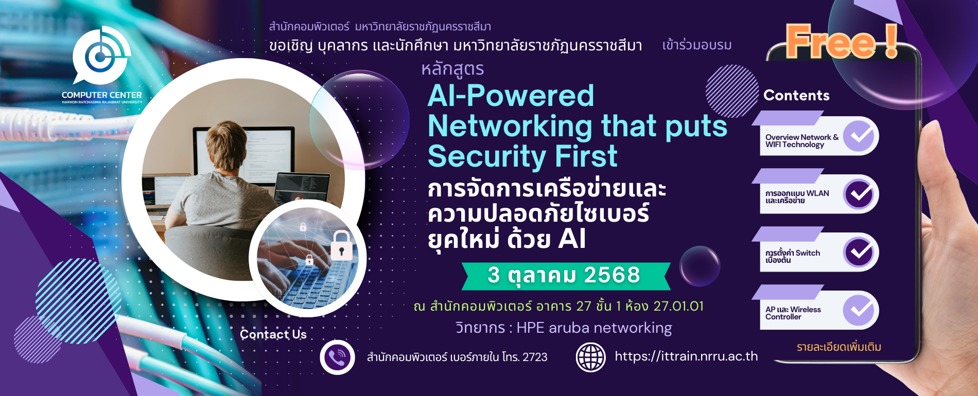 ขอเชิญ บุคลากร และนักศึกษา เข้าร่วมอบรม หลักสูตร "AI-Powered Networking that puts Security First" ฟรี !!!
